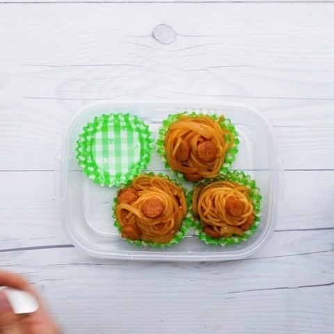 4. 粗熱が取れたらフォークで巻いて小分けカップに入れ、保存容器に移して蓋をする。冷凍庫で2週間程度保存する。