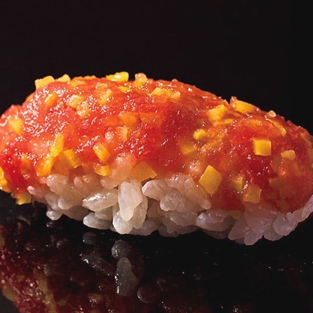 @東京カレンダー 東京カレンダー: 黄色の宝石がちりばめられたようなルックスに見惚れる「おはぎ」は、トロとタクアンを叩くいわゆる「トロタク」だが、海苔は使わず握るのが『松栄』流。 食べれば濃厚なト… 2019-05-07 黄色の宝石がちりばめられたようなルックスに見惚れる「おはぎ」は、トロとタクアンを叩くいわゆる「トロタク」だが、海苔は使わず握るのが『松栄』流。 食べれば濃厚なトロの甘みとタクアンの食感に思わずうっとり! #東京カレンダー #東カレ #tokyocalendar #寿司 #鮨 #恵比寿 #松栄 #おはぎ Ciao, Nihon.