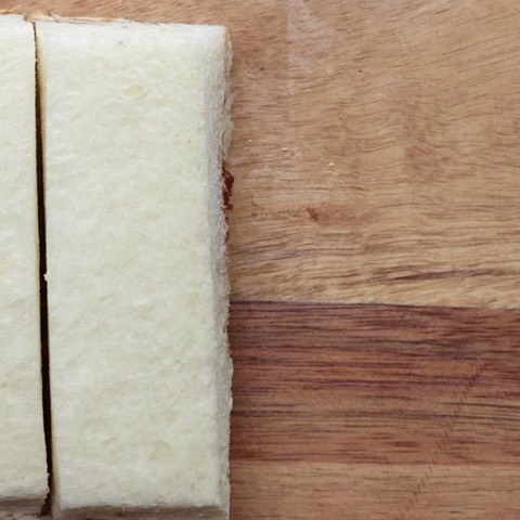 7. (5)をパンにのせ、ソースを塗った面を下にしてもう1枚の食パンを重ねる。