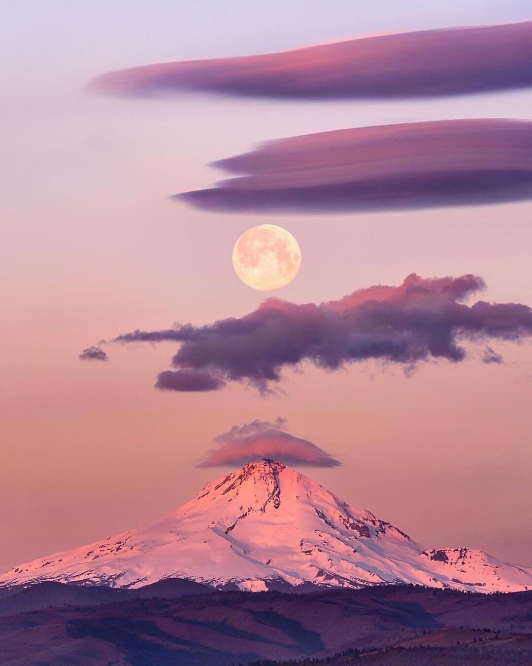A stunning full moon and awesome lenticular clouds captured in Oregon! So stunning!