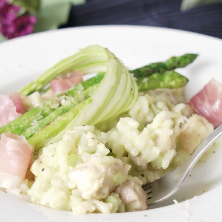【おうちイタリアン🇮🇹】チキンとアスパラの濃厚チーズリゾット🧀⠀