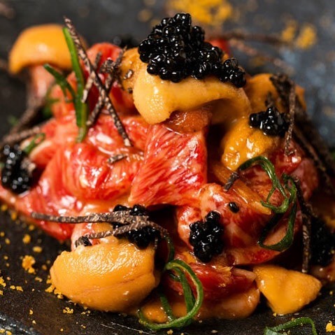 「KINTAN」に足を運んだら、必ず食べてほしいのがこちらの創作ユッケ。 希少部位である三角バラの牛刺しに、キャビア、黒トリュフ、根室産の雲丹とからすみをトッピング。 厳選した食材を使用した、贅沢なユッケをぜひ!