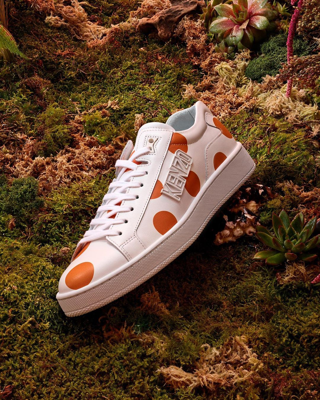 For #KENZOSS19, the playful Tennix sneakers pop out amidst an all natural vista of lush shrubbery and wild plants – shot by @justinasvilutis. Arriving in a special limited edition for this pattern, the unisex design stands out in a colorful capsule collection – to embody a natural spring feeling.