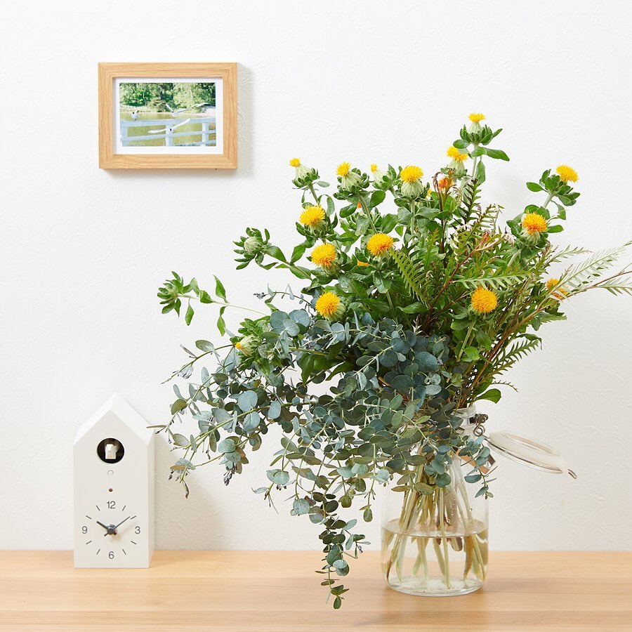 #無印良品 #MUJI #ドウダンツツジ #ユーカリ #グレビレア #ベニバナ #フランネルフラワー #インテリアグリーン #ドライフラワー