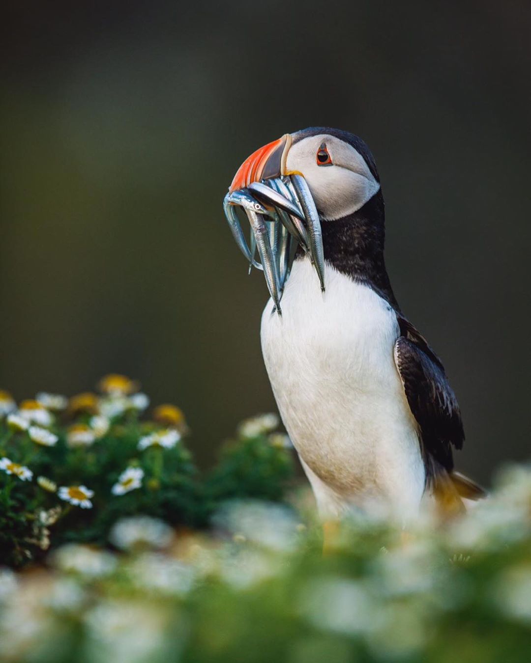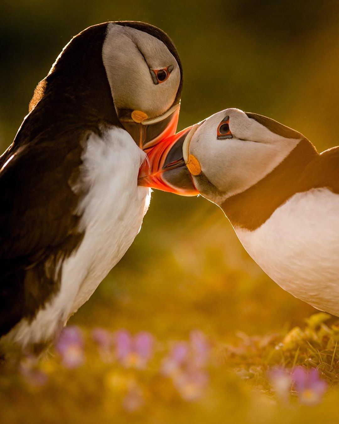 @seanweeklywildlife // For such a small bird around 10 inches in height Puffins are such epic little birds, living out at the sea for the majority of the year! They are also incredible at fishing, Puffins can carry several fish back to their nest at a time typically sand eels. The average catch is around 10 fish per trip but the record in Britain is a whopping 62 fish at once! The puffin’s beak is specialized to hold all these fish. The puffin’s raspy tongue holds fish against spines on the palate, while it opens its beak to catch more fish. Awesome creatures!