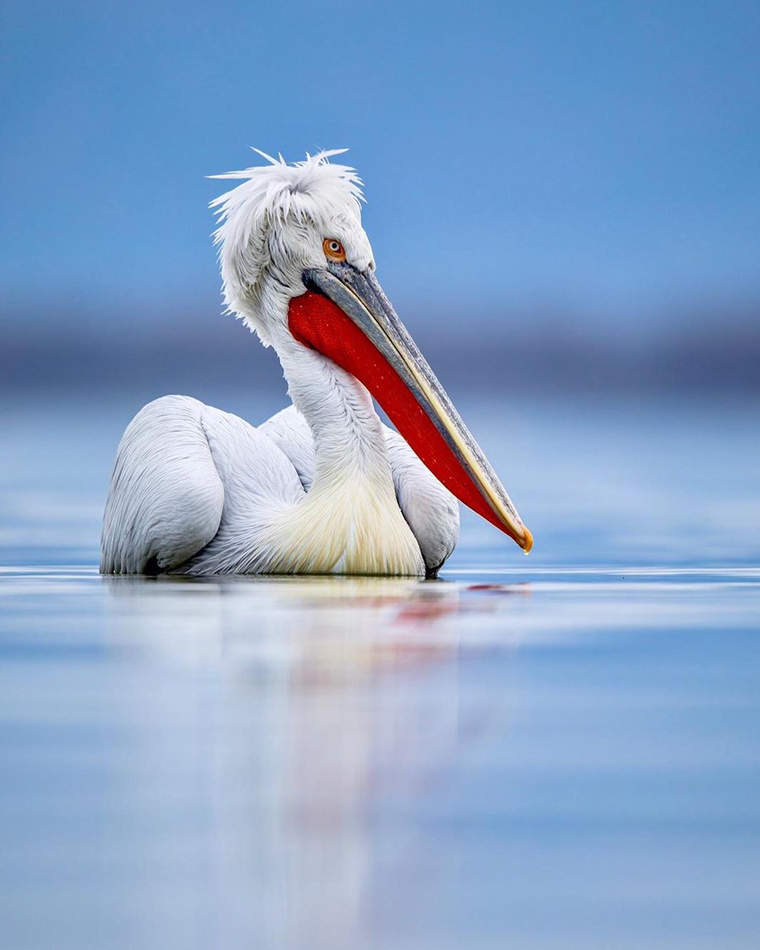 The largest of the 8 pelican species, the dalmatian pelican is also possibly the heaviest flying bird in the world. They can grow to up to 180 cm long, weigh up to 15 kg and have a wingspan of up to 3.5 metres. They also often have a really funny looking set of feathers on top of their head that looks like they are wearing a wig!
