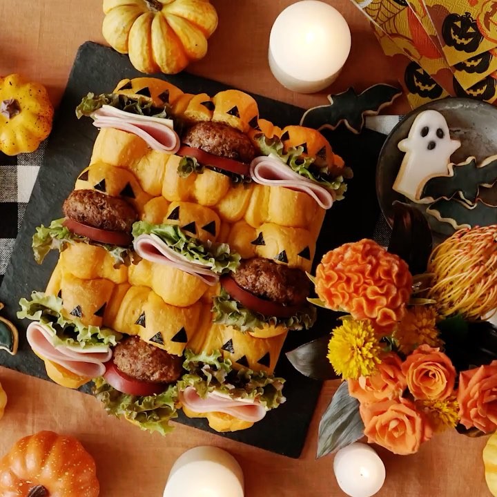 【家族でちぎって】ハロウィンかぼちゃの仲良しちぎりパン🎃 #ホームベーカリー⠀