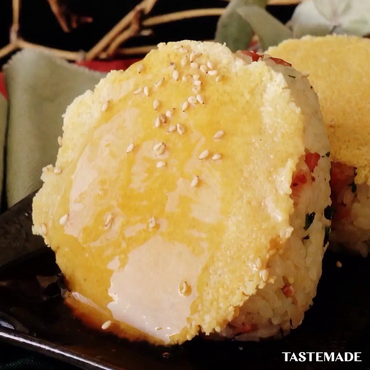 【パリとろW食感】あんかけチーズ焼きおにぎり🧀⠀⠀