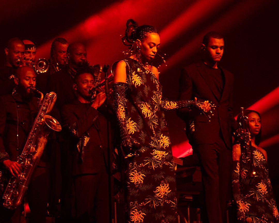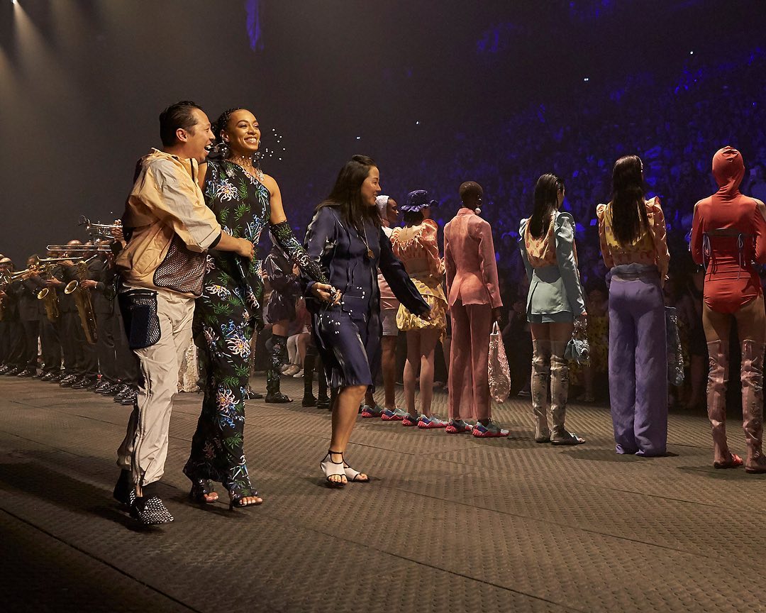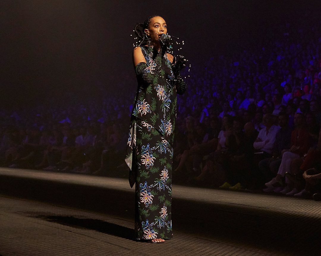 What a monumental show. Solange (@saintrecords) enchanted #KENZOSS20 with a blissful performance to 8 years of outstanding creative direction at KENZO by @carollim and @humberto. Emerging from a curtain of light, she shone in a custom sea-lily print gown and sang “a capella” alongside a brass band. Thank you Solange.