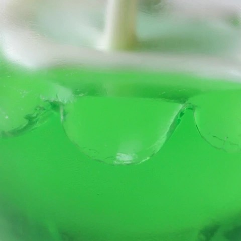 2.ボウルにメロンシロップ、半量のサイダーを加えて600Wの電子レンジで1分加熱する。ゼラチン液、残りのサイダーを少しずつ加えて混ぜる。(勢いよく混ぜると炭酸が抜けてしまうので、やさしくかき混ぜる。)