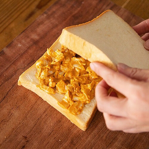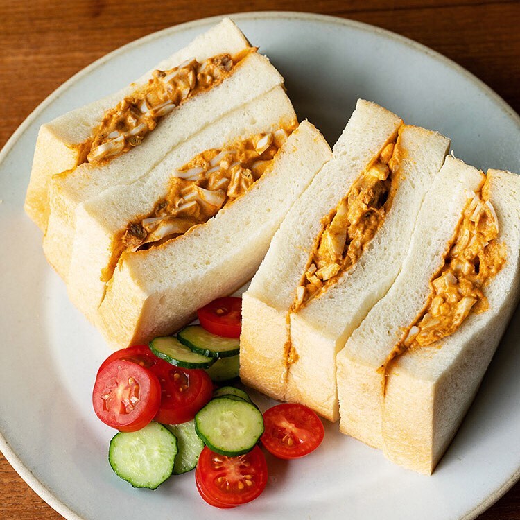 今回のレシピは、「素材を生かしたカレー バターチキン」を使った「バターチキンたまごサンド」。