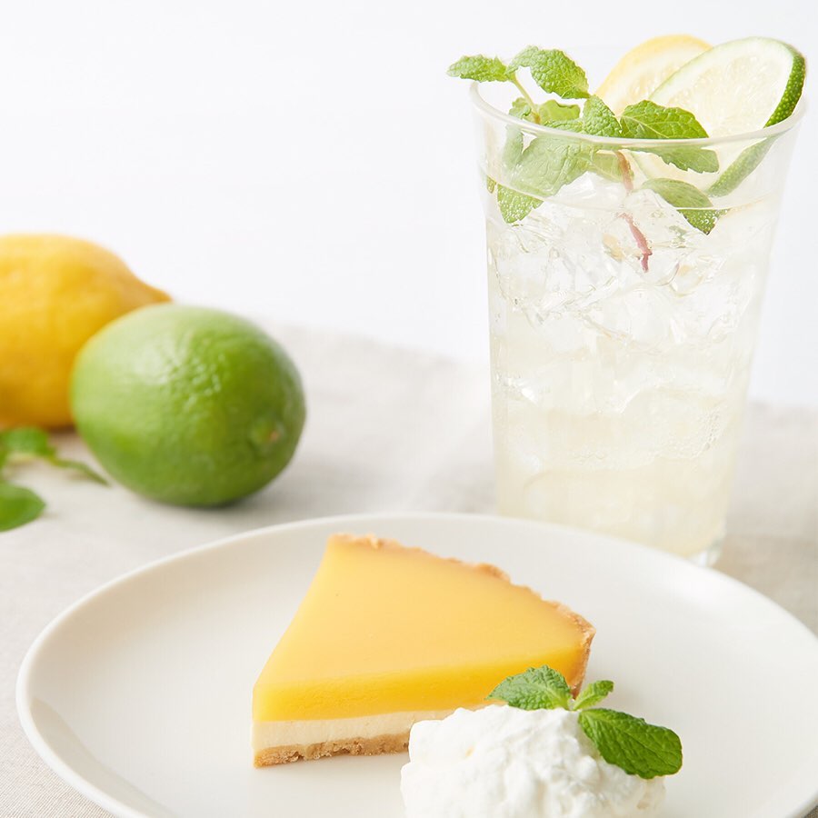 甘酸っぱいレモンカードとクリームチーズを使った「レモンタルト」、高知県産の生姜にライムとレモンを合わせたシロップを炭酸で割った「ライムスカッシュ」。