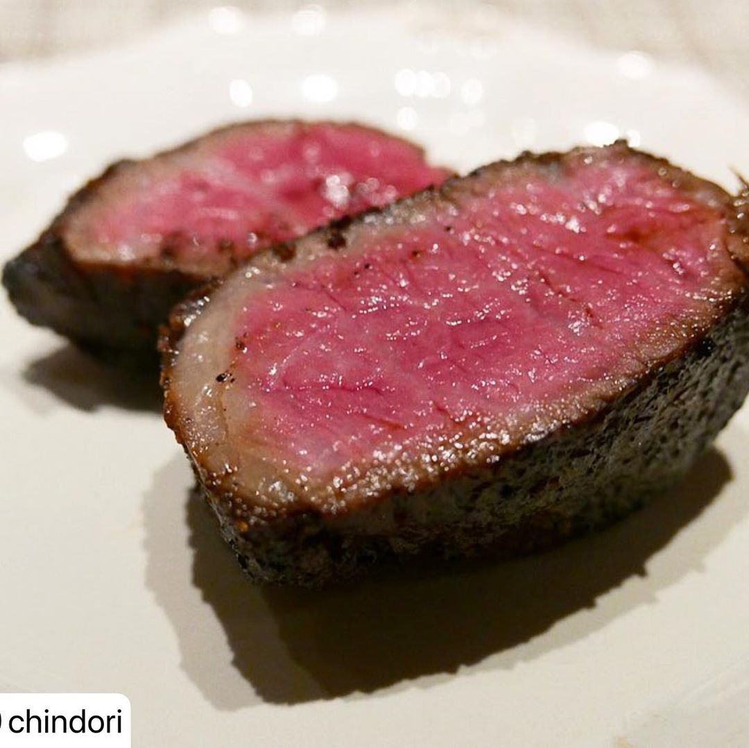 存在感抜群、味わい深いお肉でした。コンガリ焼けた外側の中のレアさ加減のバランスが素晴らしい👏おいしさ噛み締めながらもワインがスイスイと進んでしまいました🍷