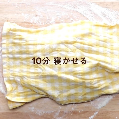 6.生地を6等分に丸め直し、閉じ目を下にして台に置き、きつく絞った濡れ布巾をかぶせて室温で10分休ませる。