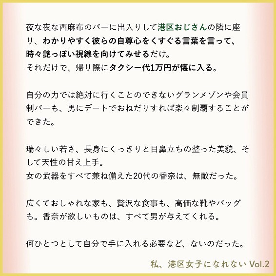 22歳で上京した香奈が、港区女子になるのは時間の問題だった。 .