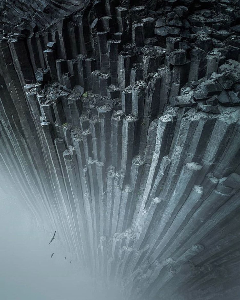 We almost can’t believe this is real! This is a huge formation of basalt rocks stretching all way above the fog. What a shot!! Photography | @arnarkristjans_photography