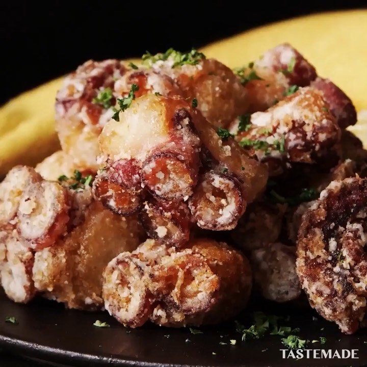 【ビビった?】巨大タコのサクサクから揚げ🐙⠀⠀⠀