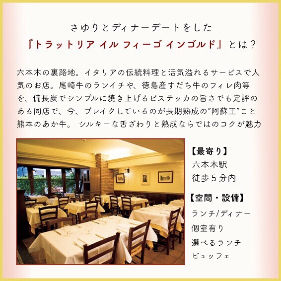 ⠀⠀⠀⠀⠀⠀⠀⠀⠀ 六本木の裏通りにある『トラットリア イル フィーゴ インゴルド』は駅から少し遠いにも関わらず、相変わらず混んでいて、にぎやかな店内には熱気が溢れていた。