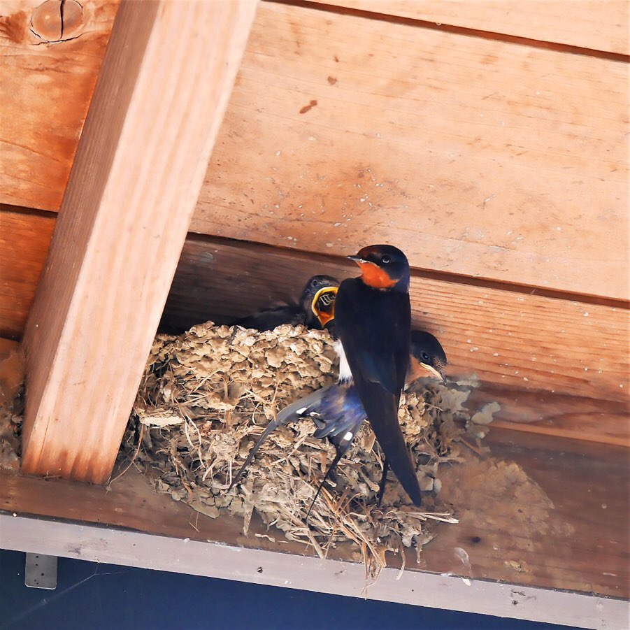 今年4月、鴨川・長狭地区に位置するお店の軒先に、冬の旅から戻ってきたツバメが、巣をつくり始めました。