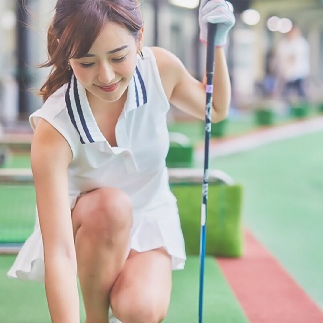 オールホワイトの可愛らしいコーディネートがよくお似合いのさつきさん。その美脚は、眩しい限りである。 「今日のウェアは『トリースポーツ』の物。女性らしさが出つつ、上品なウェアを着るようにしています。落ち着いた、上品な色味が好きですね。あまり派手過ぎるウェアだとゴルフ場も選びますし、TPOに合わせて選んでいます」 ゴルフウェアだけでなく、佇まいからも上品さが醸し出されている。