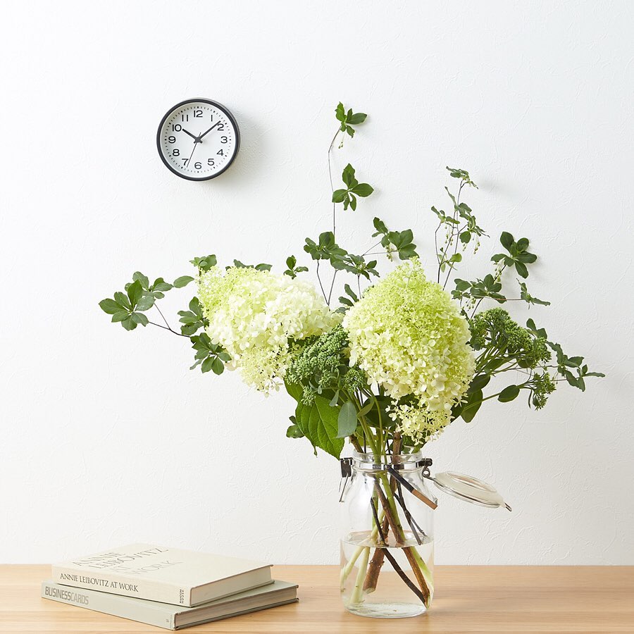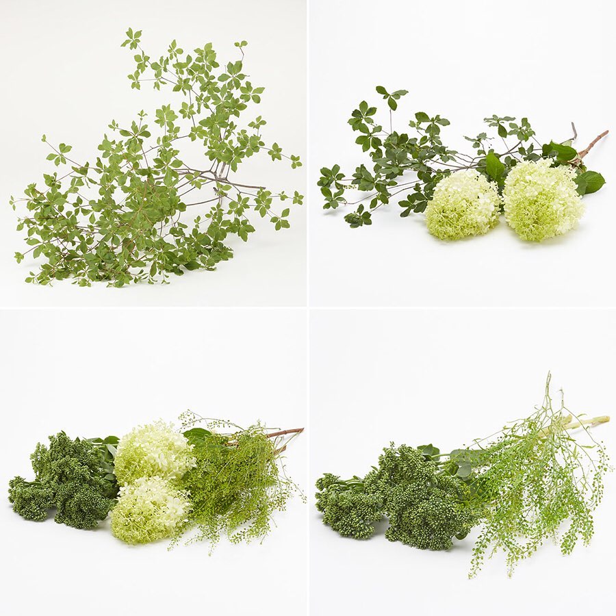 夏の部屋を涼しげに彩る、グリーンの枝や花のセットです。福島県産のドウダンツツジは、シンプルに1種類で活けても絵になり、暑い夏でも永くお楽しみいただけます。長野県産のノリウツギやセダム、南アフリカ産のタラスピオファリムを組み合わせました。ご注文期間:9/2(月)まで