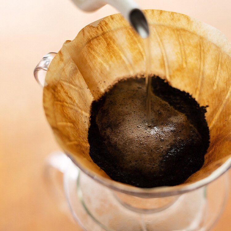 1)「オーガニックコーヒー ラテ用ブレンド 粉」をドリッパーに入れ、コーヒーをいれます。
