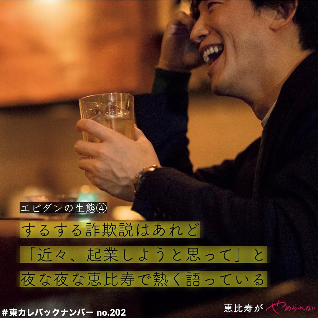 “―エビダンの生態❹― 『するする詐欺説はあれど「近々、起業しようと思って」と夜な夜な恵比寿で熱く語っている』