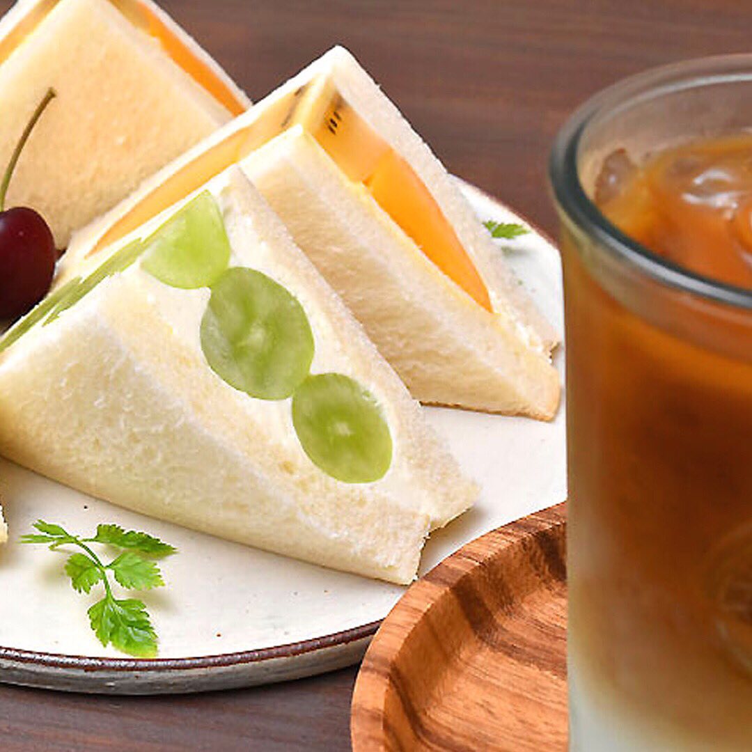 山梨県産を使用した「シャインマスカットのフルーツサンド」は~9月頃まで提供予定となっている。こだわりの珈琲とともに、美しすぎる断面のフルーツサンドを味わってみてはいかがだろう?【by東カレ編集部】