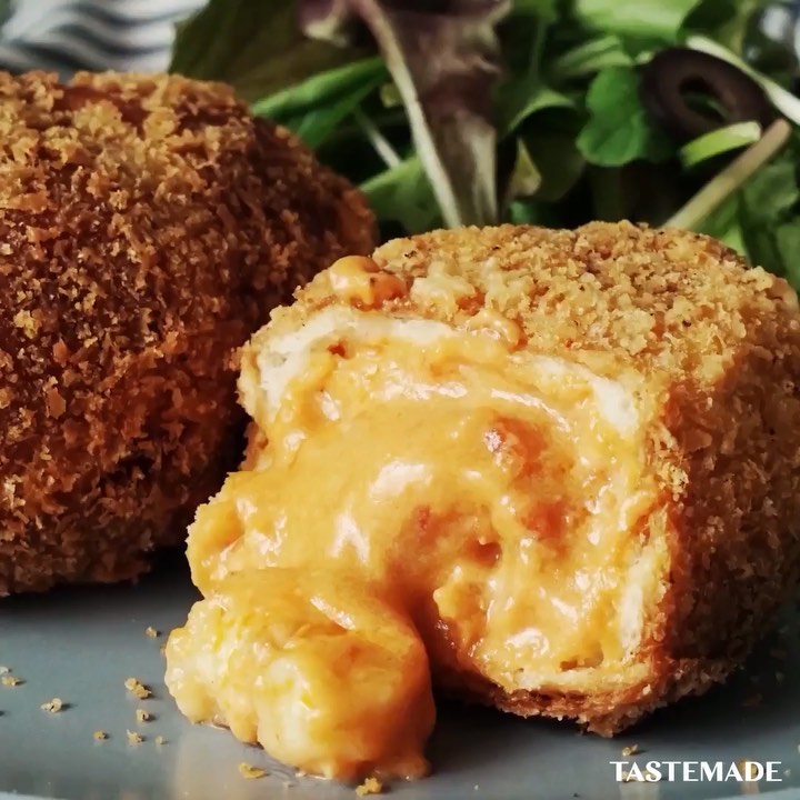 5.切れ込みを入れたロールパンに海老クリームを詰め、水溶き天ぷら→パン粉を付け、170℃の揚げ油で揚げる⠀⠀⠀⠀