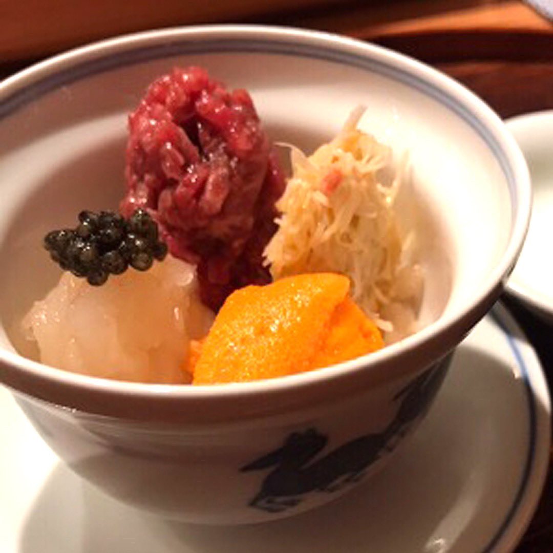 「月1定例の“お肉会”のメンバーと、コースを堪能。ハイライトは小さな四色丼。小さく可愛いルックスながらも、赤酢のシャリに赤身肉、雲丹、毛ガニ、紹興酒漬けの白海老キャビア添えが!食感や味の変化を楽しめる一品に、感動しました。記念日ディナーにもおすすめ」 ■店舗概要