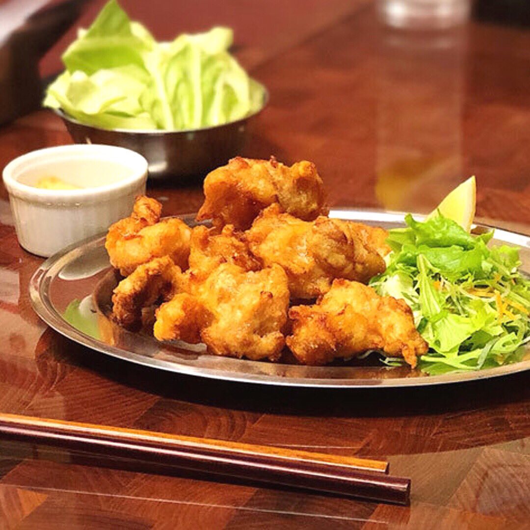 広島から取り寄せるしょうゆのみで味付けしているというシンプルさが売り。それなのに驚くほどに深い味と程よい甘みがあり、何よりふっくらジューシーで柔らかい。初訪問なら、からあげとドリンク、お通しのキャベツがセットになった「チョイ飲みセット」がおすすめ!【by東カレ編集部】