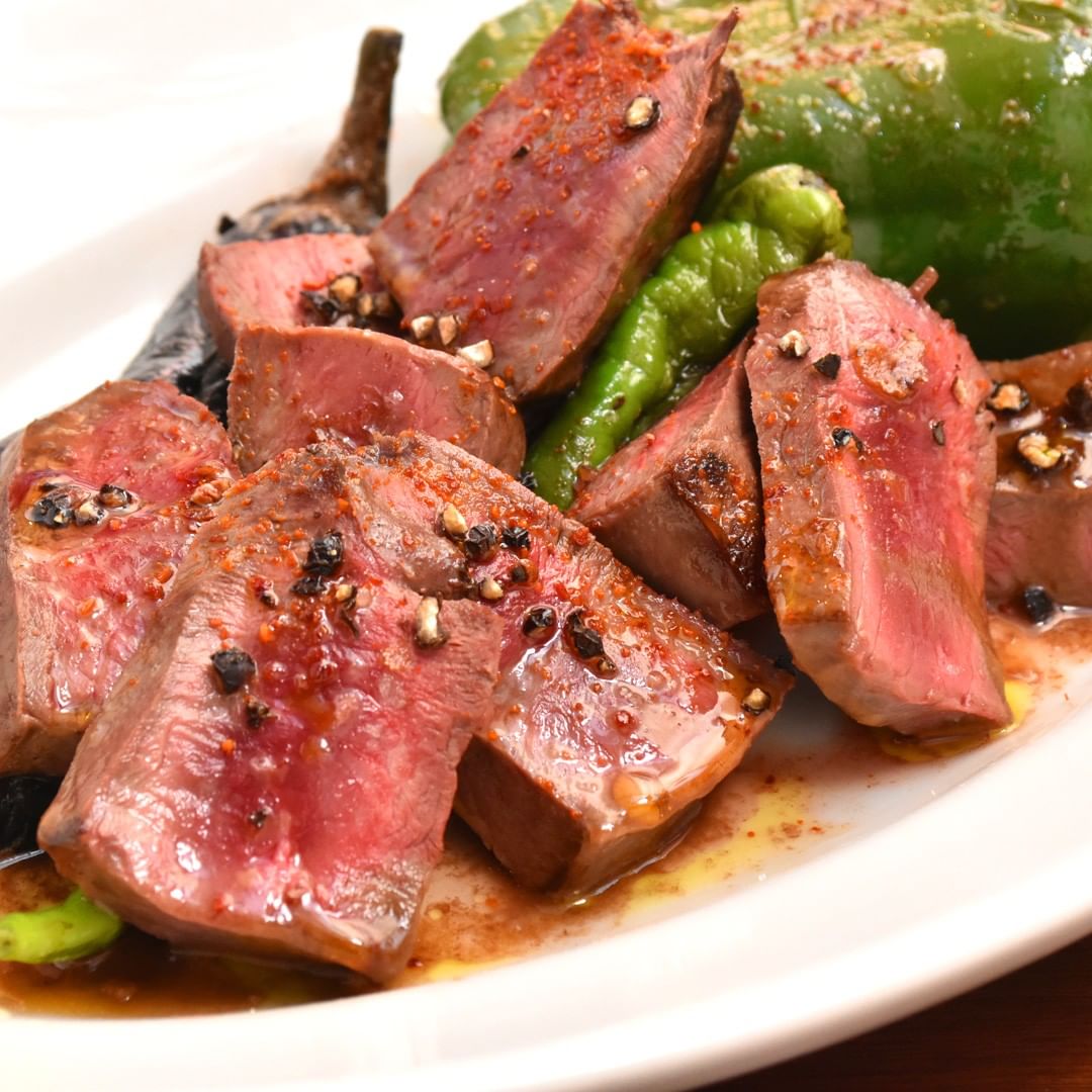 塩、胡椒、そしてバスク地方の唐辛子でアクセントをプラスして焼き上げた「牛ハツステーキ」は、噛めば噛むほど旨味が溢れ出る一品。⠀⠀⠀⠀⠀⠀⠀⠀⠀