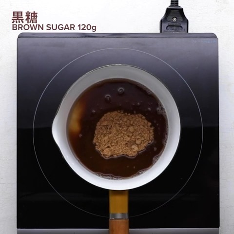 4.シロップを作る。鍋に水、黒砂糖、バニラエッセンスを入れて中火にかける。沸騰したら弱火にし、5分ほど煮詰める。