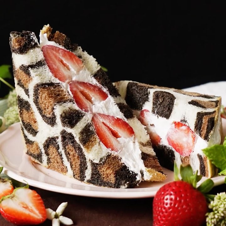 【野生かわいい】いちごたっぷりヒョウ柄クリームサンド #ホームベーカリー⠀