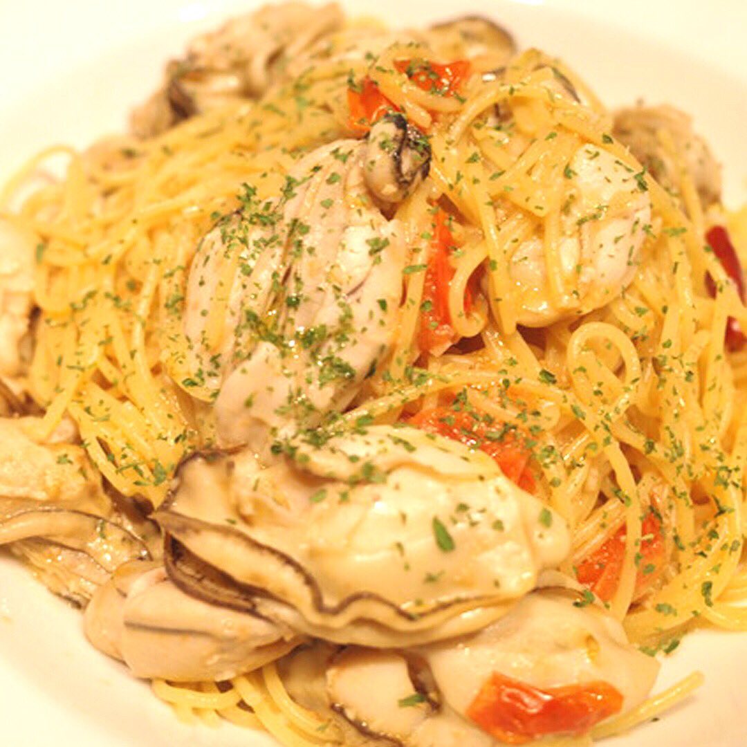 やっぱり最初に食べたいのは「生牡蠣」。ぷりっぷりの生牡蠣が大きなお皿にこれでもか!というくらいに盛り付けられ、見た目のインパクトも抜群! クリーミーな舌触りと濃厚な味を思う存分堪能しよう。