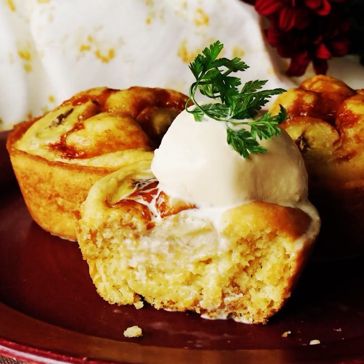 【材料はたった3つだけ!】バナナプリンカップケーキ🍌⠀