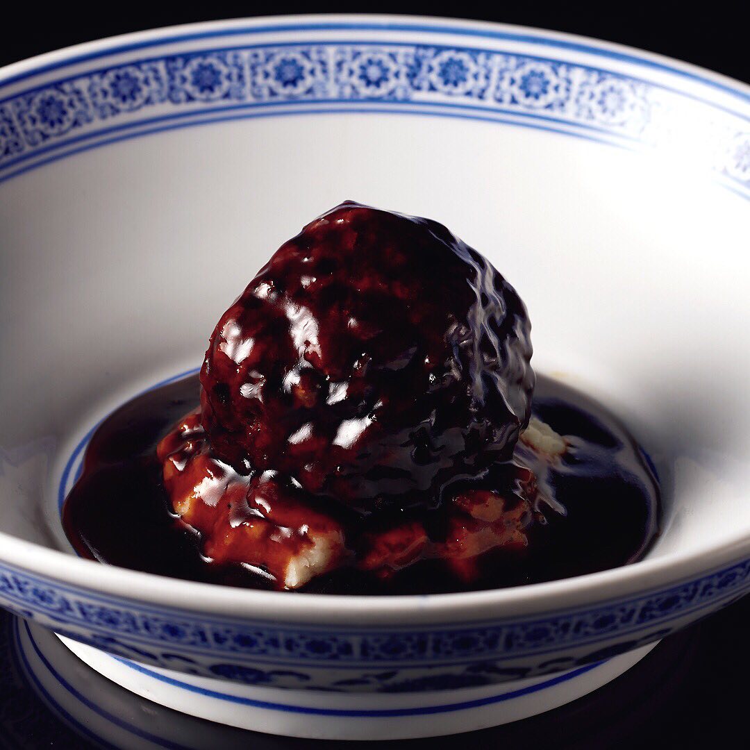 『JASMINE 憶江南』の「獅子頭 大きな肉団子 伝統的な上海醤油煮込み」¥1,600。迫力の肉塊はなんと250gというボリューム!