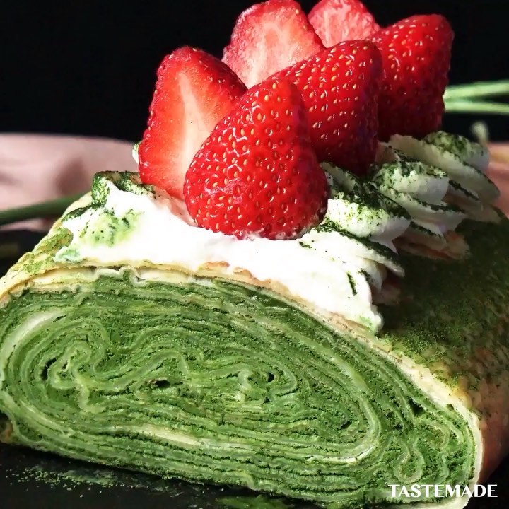 #food #foodie #cooking #recipe #tastemade #japan #japanese #japanesefood #sweets #dessert #matcha #crepe #roll⠀⠀⁠⠀