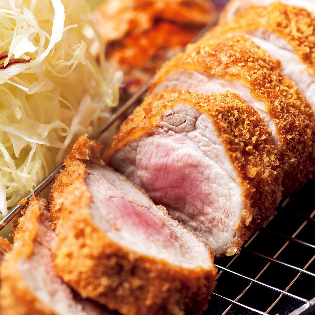 肉の専門店が母体という強みを生かし、動物性の原料を含まない餌で育てた群馬産のこだわり豚「山峰」を使用。きめ細かい生パン粉をまとわせ、なたね油で揚げているため、とても軽やかなのが特長だ。