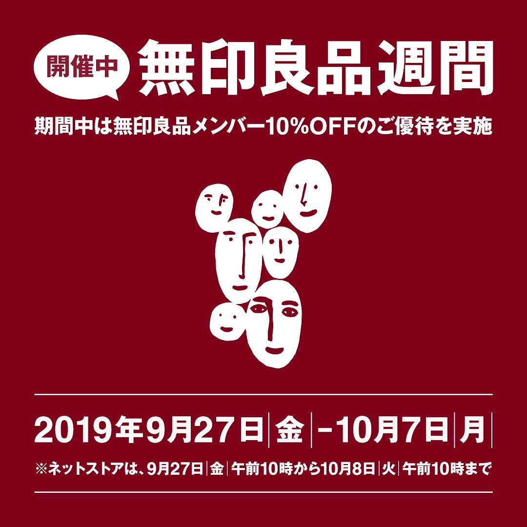 @MUJI無印良品 MUJI無印良品: 【無印良品週間】10/7(月)まで開催 無印良品メンバーの皆さまに感謝を届ける「無印良品週間」を、10/7(月)まで開催しています。(ネットストアは10/8(火… 2019-09-27 【無印良品週間】10/7(月)まで開催 無印良品メンバーの皆さまに感謝を届ける「無印良品週間」を、10/7(月)まで開催しています。(ネットストアは10/8(火)午前10時まで) 期間中、店舗では MUJI passport やクーポンメールの提示で10%OFF、ネットストアでのお買い物も10%OFFです。 ※他の割引との併用はできません #無印良品 #MUJI #無印良品週間 Ciao, Nihon.