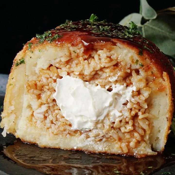 2.ボールにカレーライスを詰め、クリームチーズを真ん中に入れ、冷凍する(30分〜)⠀