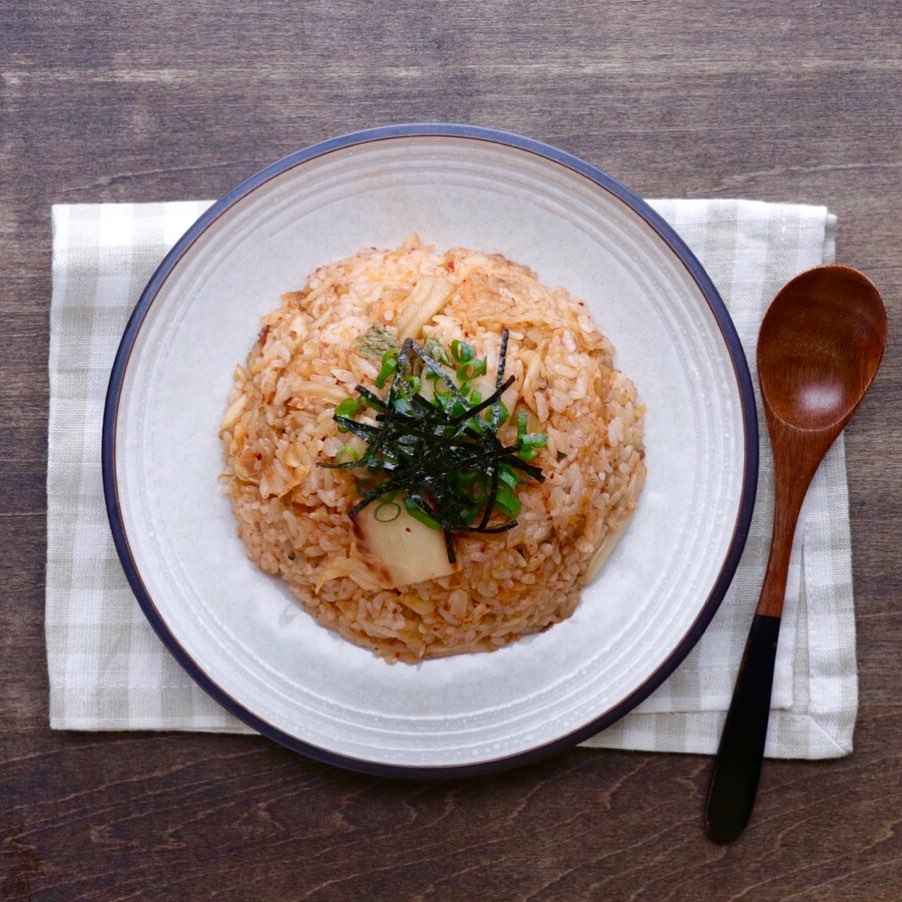 キムチ50g、しょうゆ小さじ1、塩、コショウで味を調える。器に盛り、お好みで万能ねぎ、刻みのりをのせたら、完成!