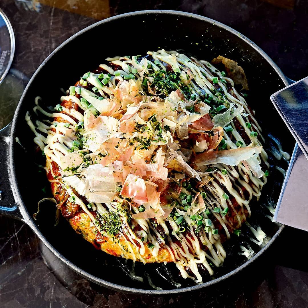 そこで「お好み焼き」を初夏から始めたところ、国内外のゲストに大好評。タコや桜海老が入った山芋主体の生地がふんわり美味しいのに加え、自家製ソースが秀逸だ。