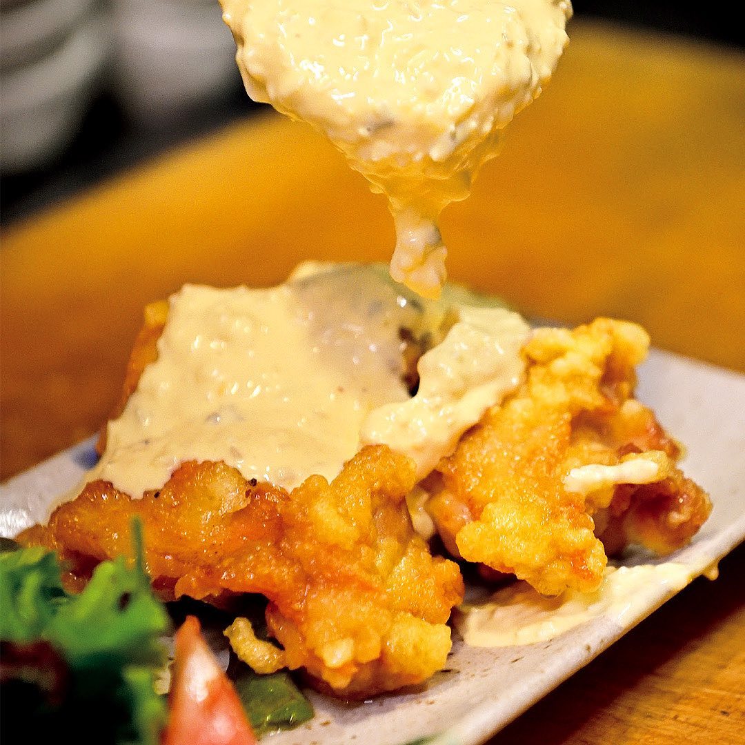 二度揚げした鶏肉を甘酢にからませ、最後にたっぷりタルタルをのせ完成。家では真似できない、手間のかかった一品だ。