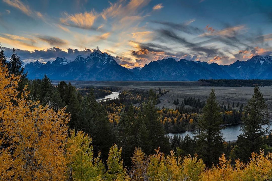 Photo by #CanonExplorerOfLight Darrell Gulin: “Grand Teton National Park fall colors at sunset from Snake River overlook.” Camera: #Canon EOS 5D Mark IV
