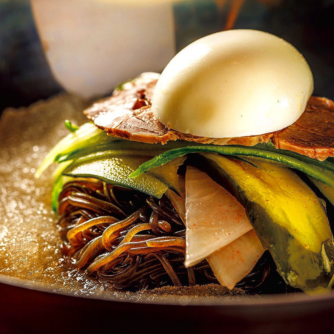 そのスープはまるで牛肉を噛んでいるかのように肉の味が濃厚で、もちもち食感の葛冷麺によく絡むのもシャーベット状ならでは。