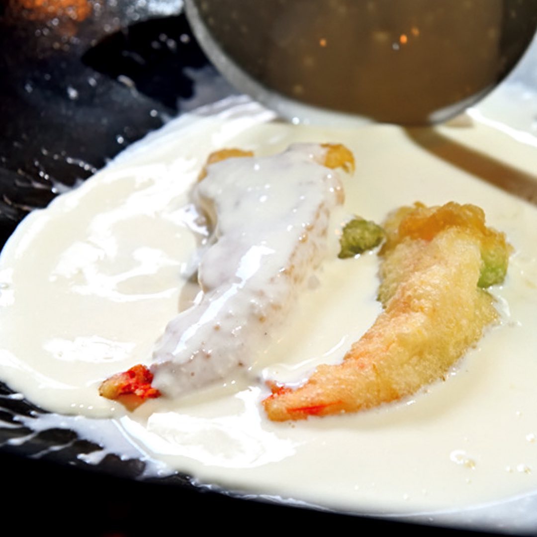 なめらかなソースの下で、サクサクの衣も加われば3つの異なる食感が楽しめる。