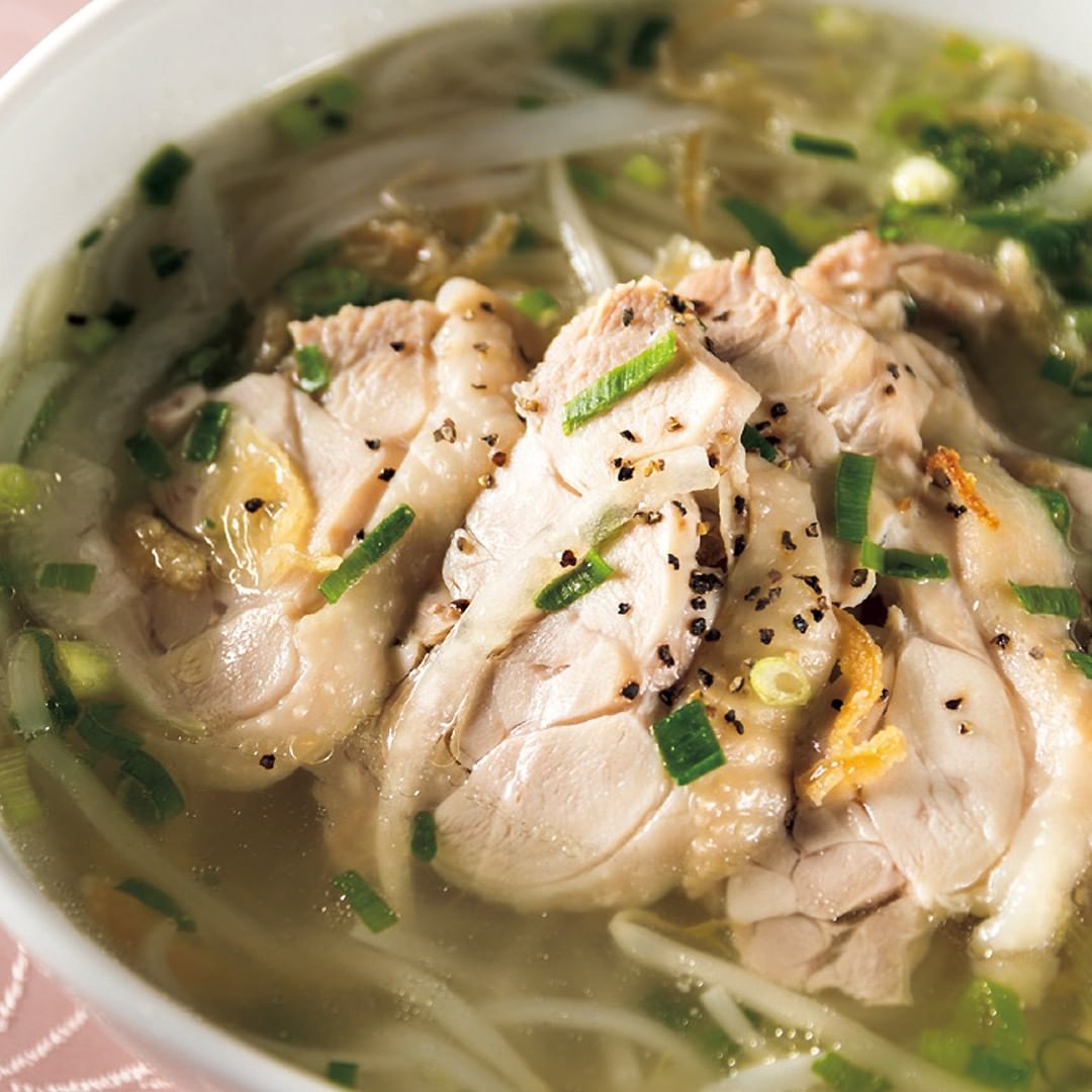 定番の「蒸し鶏のフォー」は、鶏の骨と一緒にタマネギ、リンゴ、生姜をグリルして旨みを閉じ込めてから鍋で煮込み、甘みと深い味わいを抽出。⠀⠀⠀⠀⠀⠀⠀⠀⠀