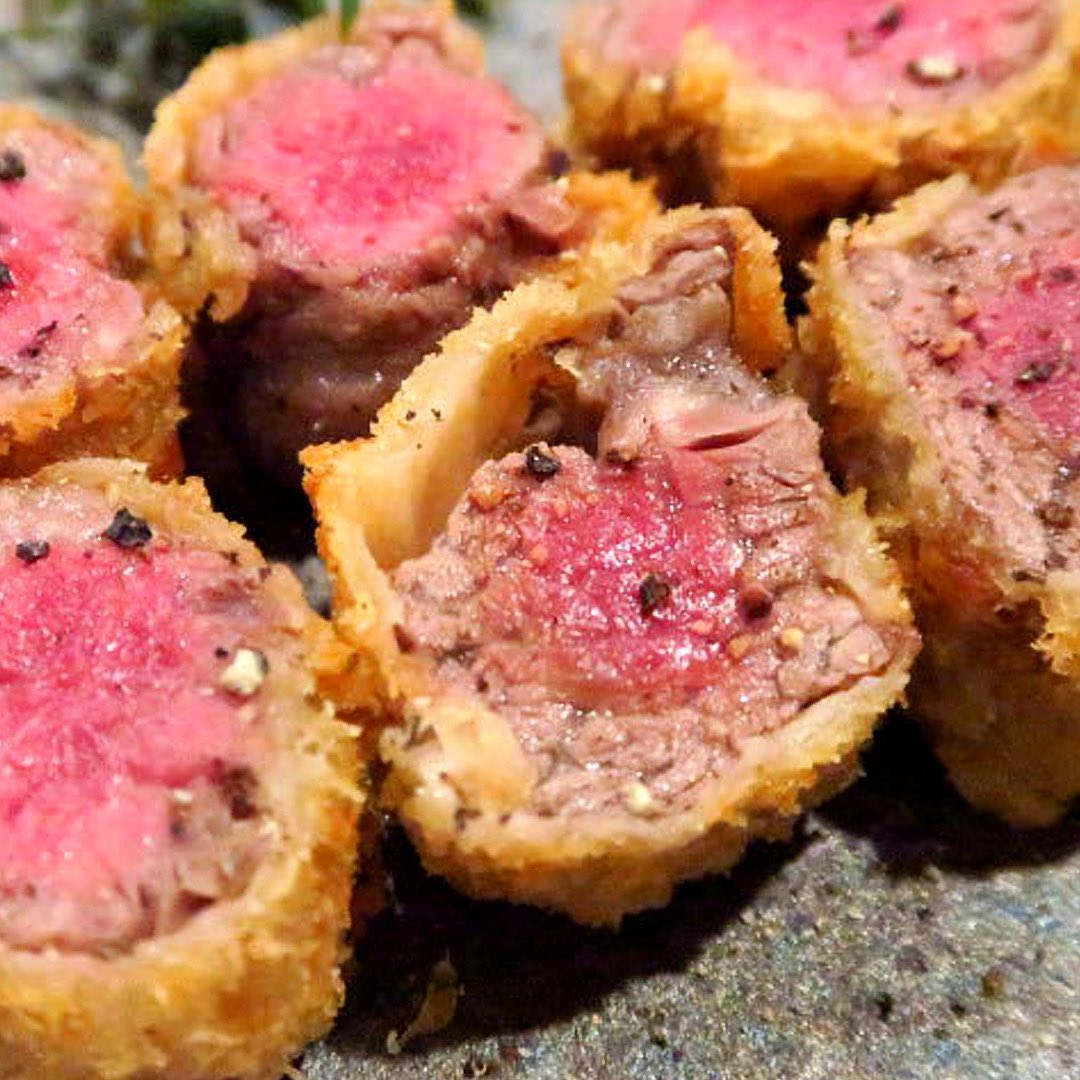 トリュフ塩でいただく「ビフカツ」など、一品料理も充実のラインナップ。港区のスタイリッシュさがありつつ、どこか懐かしさもまじりあった雰囲気は、気取らないデートにピッタリだ。
