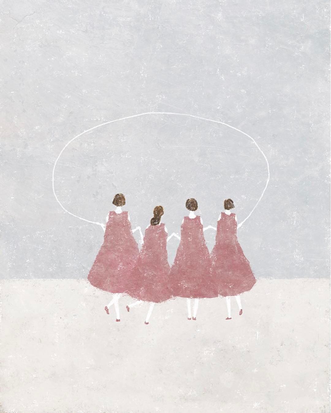 「ユニットでテーマにしているのが “こわれたら、はじまり” という言葉です。そのため僕が描く絵も、どこか愛らしくてどこか物悲しかったりと、複雑な要素が絡み合うイラストを心がけています。またピアノを軸とした音楽も演奏しているので、音が聴こえてくるような絵になるようにも心がけています」絵と音と言葉のユニット“repair”を結成し、もともと好きだった絵を本格的に描き始めた日下 明 (@akirakusaka) さんの絵、実はデジタルペインティングだそう。「ワンクリックで色をつけるような事はせず、ブラシツールを駆使して一色ずつ塗り重ねたり、ツブツブも一粒ずつ描いていて、手で描いている感覚と同じように描いています。もう一つのこだわりはマウスで描く事。自分が思ってもいない絶妙な下手さが出るためです」奥行きのつけ方にこだわり、なるべく3色で収まるように色付けしている。「本の装丁のお仕事がいただけるように頑張りたいと思っています」
